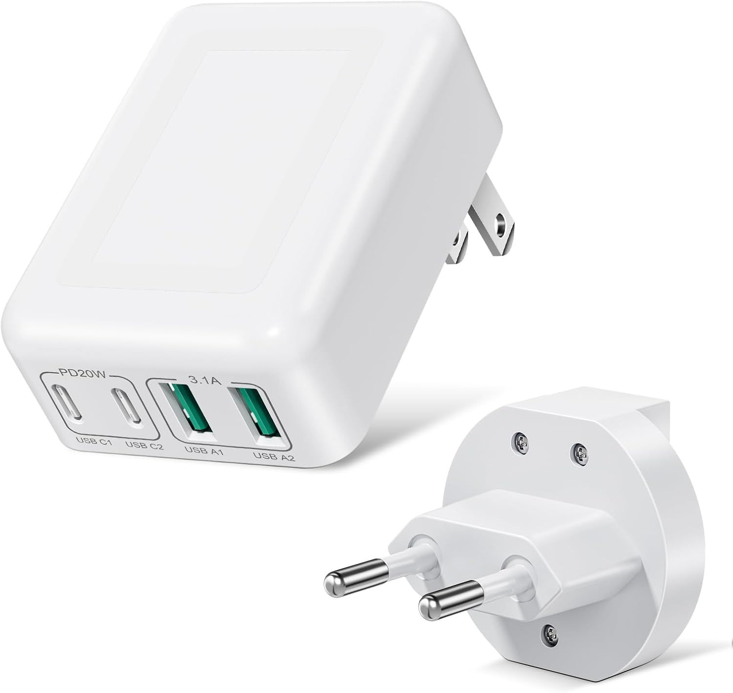 USB C Charger, 40W Flat Multi Fast USB Charger, 4 Port Multi USB Power Supply, Compatible with iPhone 13/14/15/16 Pro Max, Sam-Sung Galaxy S24/S23/S22, EU, US Travel Charger