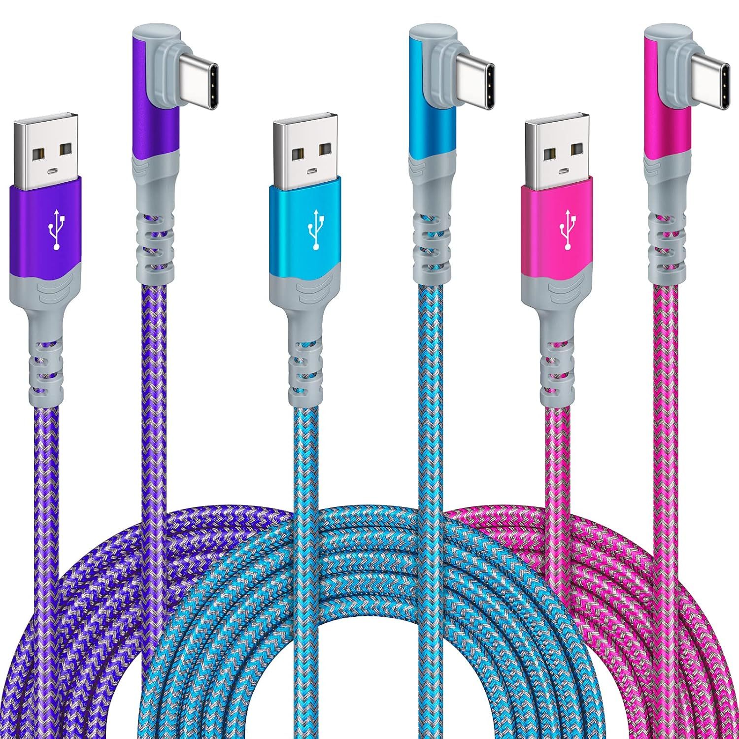 Hamiltion-Lot De 3 Câbles Usb Type C 3 M, Long 3 A, Usb C, Angle De 90 °, En Nylon Tressé, Câble De Charge Usb A Vers Usb C, Pour Iphone 16 15 Pro Max, Sam-Sung S24 S23 S22 S21, Note 10 9 8 Lg V30