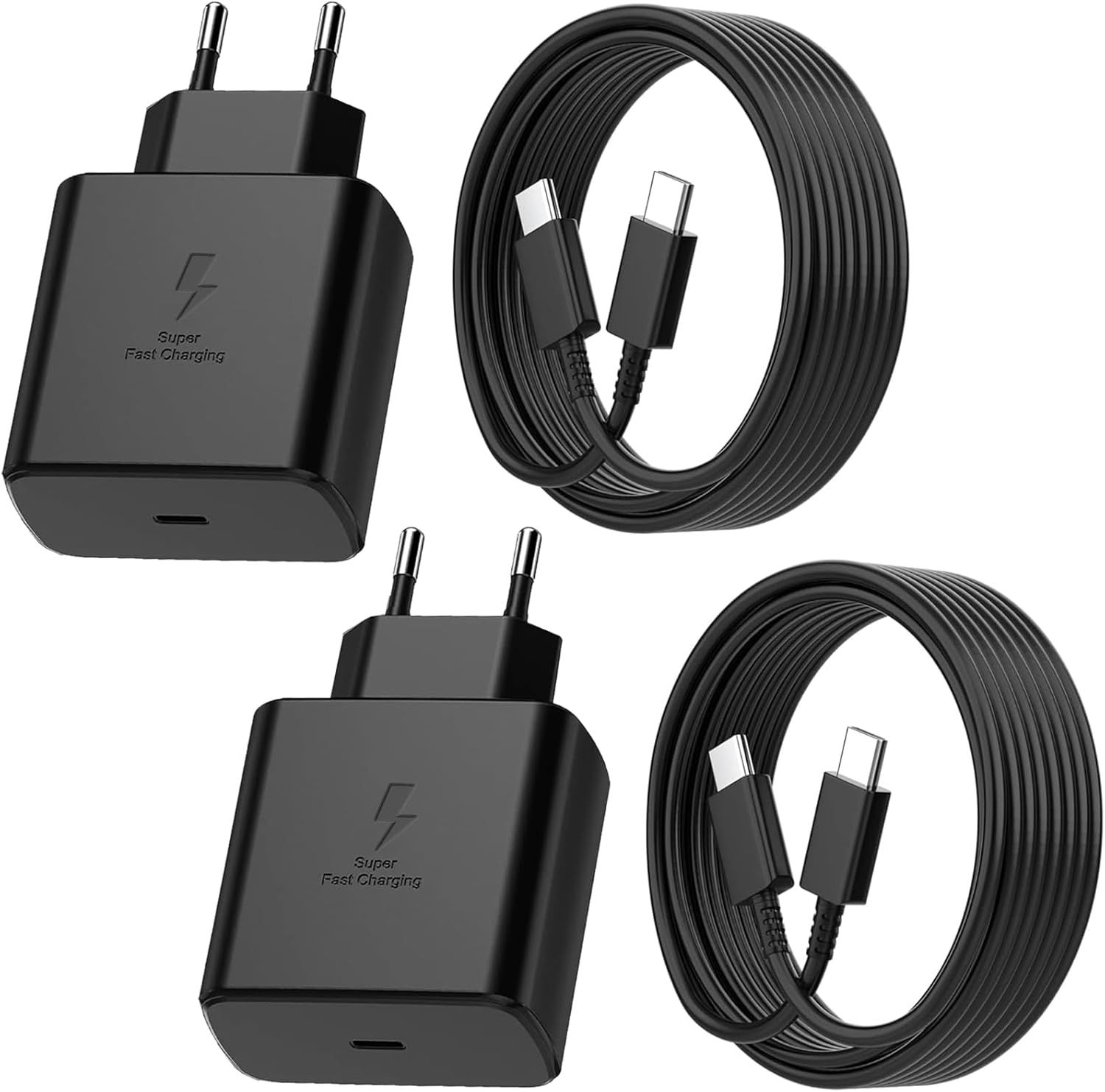 Chargeur USB C 45W Chargeur Sam-Sung Charge Rapide pour Samsung Galaxy S25, S24+, S24 Ultra, S23+, S23 Ultra, S22, S21, Note20, Tab S9 Ultra et 2M Câble USB C, Prise Secteur USB Type C Adapteur Noir