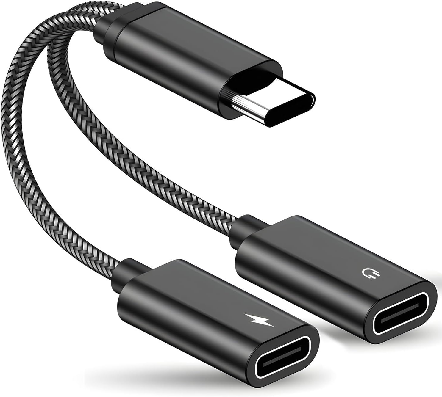 Adaptateur Double USB C Jack Casque et Chargeur, 2 en 1 Adaptateur Double USB C, Câble TPE Robuste et Portable, Double Prise Jack de Type C Compatible avec Sam-sung Galaxy S23/S22/S21/Pixel