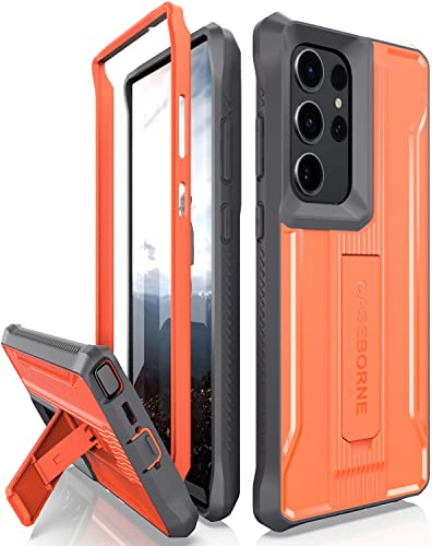 CaseBorne V Coque Compatible avec Coque Samsung Galaxy S23 Ultra 5G. Boîtier de Protection Complet de qualité Militaire avec béquille intégrée [Version sans écran] - Noir (Orange)
