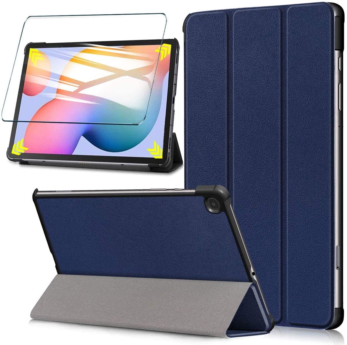 Coque Pour Tablet Samsung Galaxy Tab S6 Lite 10.4"" 2020 + 1 X Film Protection D'écran En Verre Trempé - Flip Case Cover Etui Bumper Avec Support Fonction Housse Pour Sam Tab S6 Lite 2020, Navy