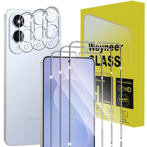 Wayneer Verre Trempé Pour Samsung Galaxy S26, [3+3 Pièces] Vitre Protection écran Protection Camera, 9H Dureté Ultra HD Anti Rayures Film Protection écran, Avec Outil D'alignement Facile