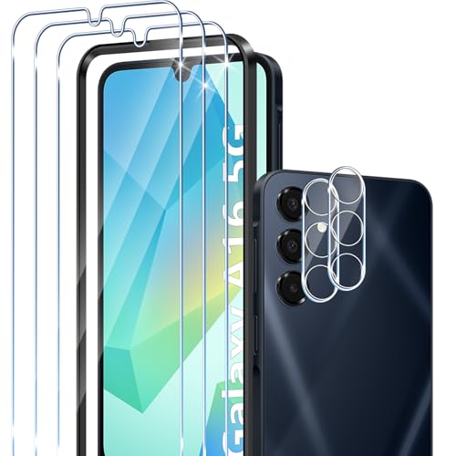 Yantree Verre Trempé Compatible avec Samsung Galaxy A16 5G Protection Ecran, 3 Pcs 9H Dureté Protection écran + 2 Pcs Protection Camera avec Outil d'Installation Facile, Sans Bulles HD Glass