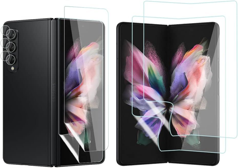 [6-Piece Screen Protector Compatible With Samsung Galaxy Z Fold 3 5g, Tpu Screen Protector + Tempered Glass Rear Camera Protector [Fingerprint Support] For Galaxy Z Fold 3 5g