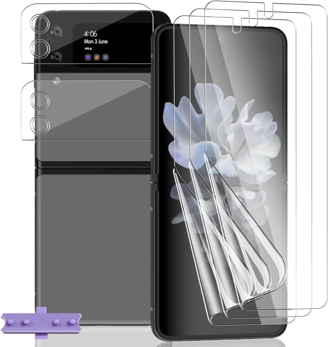 Pack Of 3 + 3 Tempered Glass Screen Protectors For Samsung Galaxy Z Flip 6, Screen Protector And Rear Camera, Anti-Fingerprint, Anti-Scratch, Bubble-Free, 9h Hardness, Hd Glass Protector