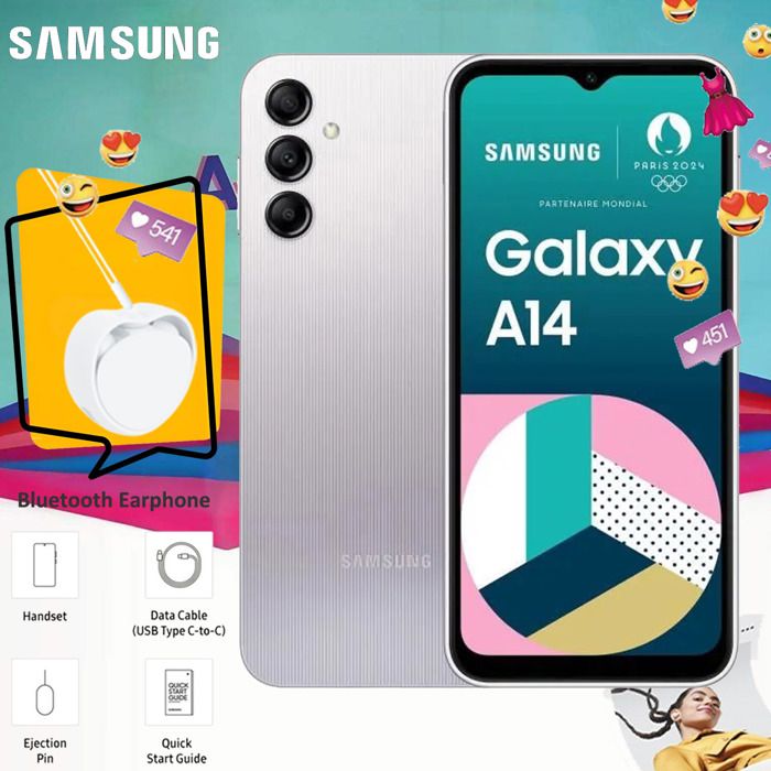 4Go, 2023, 64Go, 5G (NR), 6.6 pouces, Galaxy A14