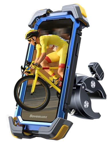 Bovemanx Support Téléphone Vélo [Installation en 5s], Support Téléphone Moto, Support pour Guidon avec Rotation à 360° pour iPhone 15/14/13/12/11 Pro, Samsung,Smartphones de 10 à 18 cm