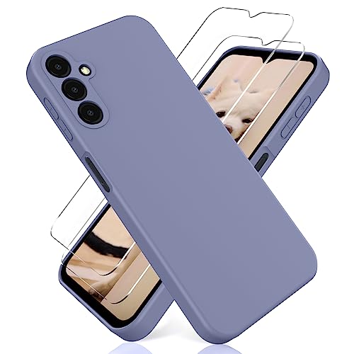 YiKaDa - Coque Compatible avec Samsung Galaxy A34 5G + [2 Pièces] Protection d'écran en Verre Trempé, Housse Silicone TPU Liquide - Gris Lavande