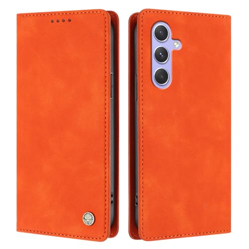 TUUNKMUY Coque Samsung Galaxy A55, Housse Samsung Galaxy A55, Coque Rabat Coque Portefeuille Samsung Galaxy A55, Etui Flip Folio Phone Cover Case, Emplacement Carte, Fermeture Magnétique, Orange