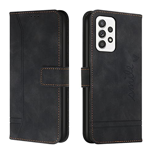 FMPCUON Coque pour Samsung Galaxy A73 5G, Luxe Cuir de Housse Portefeuille Etui Conception Rétro [Fonction Support] Flip Case Compatible avec Samsung Galaxy A73 5G, Noir