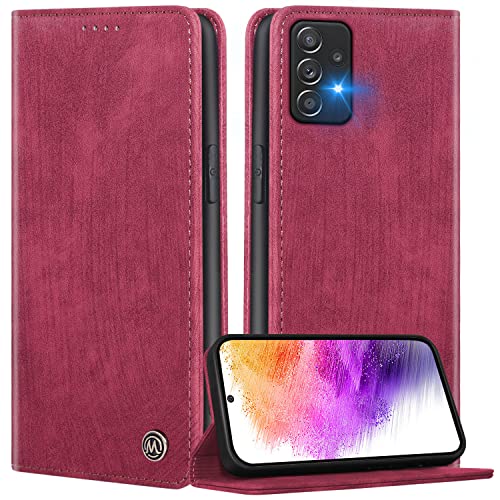 FMPCUON Coque pour Samsung Galaxy A73 5G, Luxe Cuir de Housse Portefeuille Etui Conception Rétro [Fonction Support] Flip Case Compatible avec Samsung Galaxy A73 5G, Vin Rouge