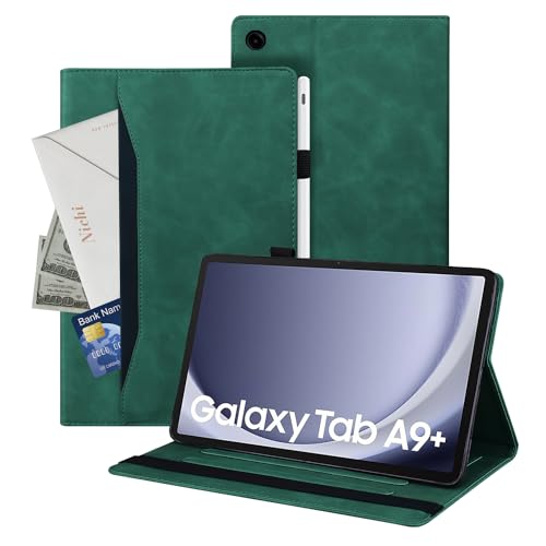 Auslbin Coque Tablette Samsung Tab A9 Plus 11 Pouces 2023 Tablette en Cuir PU Adaptée à Coque Galaxy Tab A9+ /SM-X210/SM-X215, Style en Cuir Classique avec Fonction Support, Vert