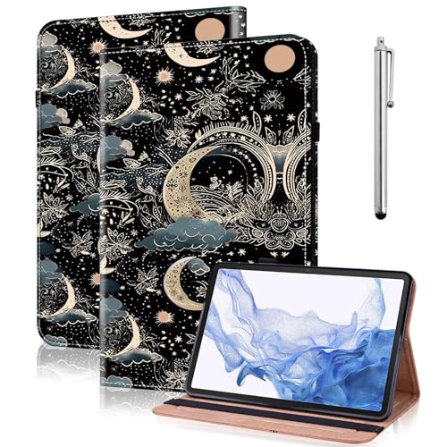 GLANDOTU Coque pour Samsung Galaxy Tab A9 Plus 11 Pouces (SM-X210/X216/X218) avec Stylet,Étui Housse de Protection Ultra Fin en Cuir PU avec Fonction Support pour Samsung Tab A9 Plus -Lune