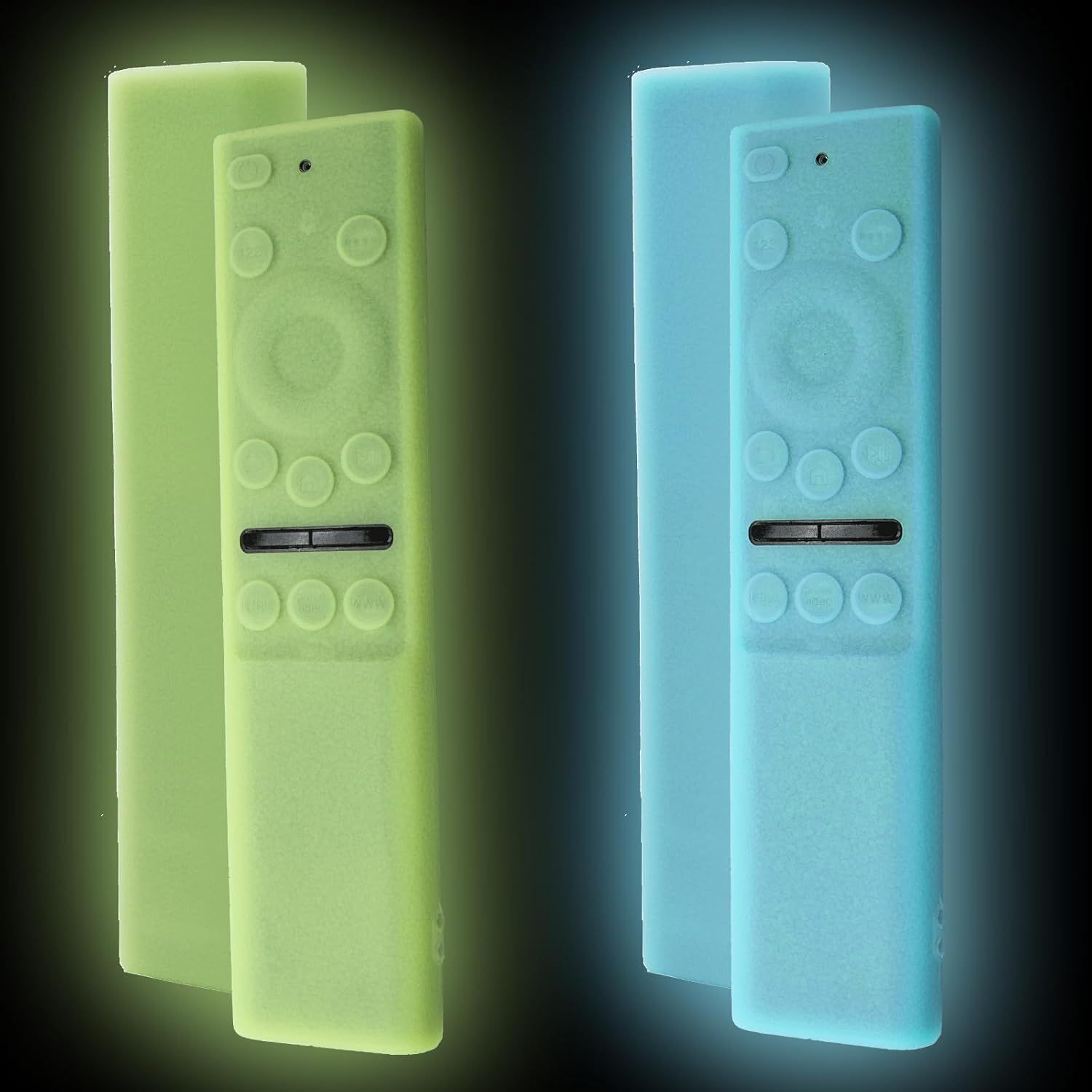 Lot de 2 Coques de Protection en Silicone pour Samsung Smart TV BN59 Series 2021 2022 BN59-01357/01385/01265A - Coque antidérapante phosphorescente (Bleu Brillant + Vert Brillant)