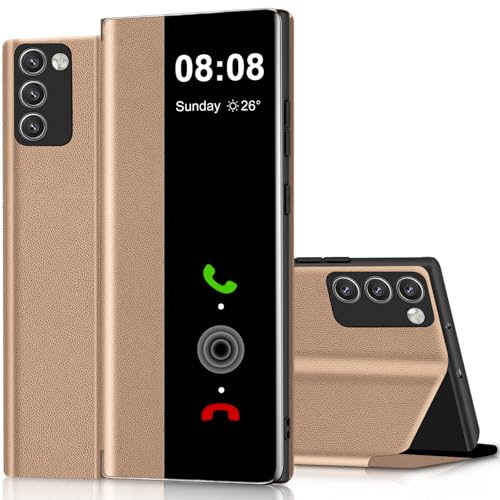 Fciaeytou Coque pour Samsung S20 Clear View Cover Coque pour Samsung Galaxy S20 Etui à Rabat Protection Case Flip Folio Silicone TPU Antichoc Mince Douce 360 Full Body Antichoc Housse 5G (Doré)