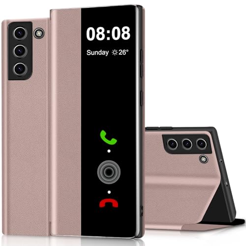 Fciaeytou Coque pour Samsung S21 Clear View Cover Coque pour Samsung Galaxy S21 Etui à Rabat Protection Case Flip Folio Silicone TPU Antichoc Mince Douce 360 Full Body Antichoc Housse 5G (Or rose1)