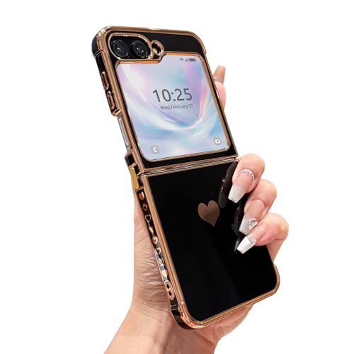 L-FADNUT Coque Compatible avec Samsung Galaxy Z Flip 6/5 Coque de Téléphone avec Motif Cœur Galvanisé Coque Pare-Chocs en Silicone TPU Souple pour Samsung Flip 6/5, Noir