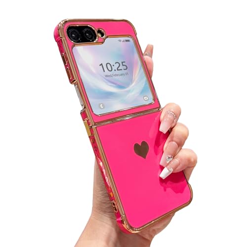 L-FADNUT Coque Compatible avec Samsung Galaxy Z Flip 6/5 Coque de Téléphone avec Motif Cœur Galvanisé Coque Pare-Chocs en Silicone TPU Souple pour Samsung Flip 6/5, Rose Rouge