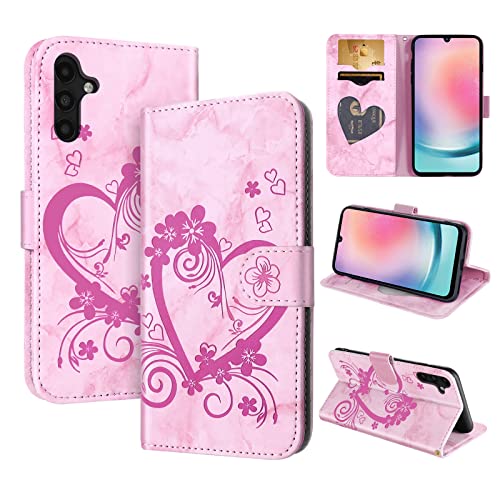 Grandoin Coque pour Samsung Galaxy A24 4G, Housse Etui Portefeuille Samsung A24 4G, Mode Créatif Effet Bookstyle Étui de Protection Housse en PU Cuir avec TPU Silicone Phone Case (Rose)