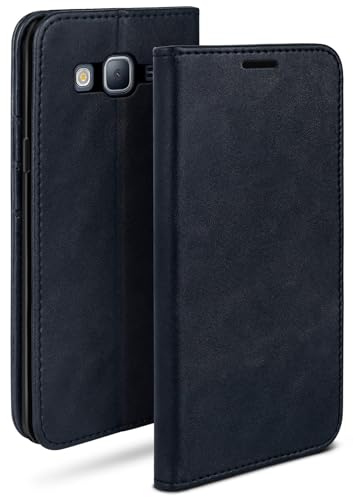 moex Étui Folio Style Cuir Compatible avec Samsung Galaxy J3 (2016) | avec Support/Fentes pour Cartes, Bleu foncé