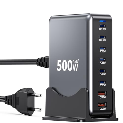 Chargeur USB C 500W, 8 en 1 Chargeur rapide, GaN III PPS Station de Charge 2-PD100W Port/4-PD65W/2 QC3.0 USB A, Laptop Alimentation Compatible avec MacBook Pro/Air/iPad/iPhone 15/16/Samsung Galaxy S23