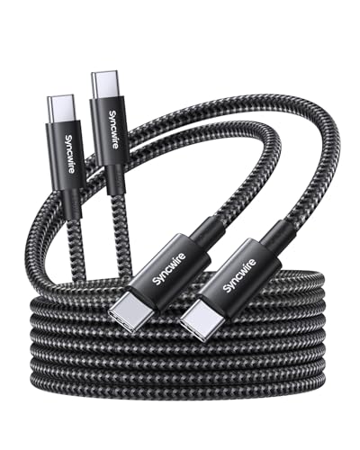 SYNCWIRE Câble USB C vers USB C 2M [Pack de 2], 240W (48V*5A) câble de chargeur tressé en nylon, charge rapide de type C pour iPhone 15/15 Pro, iPad, MacBook Pro et Samsung Galaxy S23