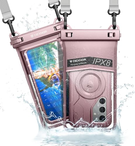 Dexnor IP68 Pochettes étanches pour Téléphones, Universal 3D Téléphone Sac étanche avec Double Crochet Réglable pour iPhone 15 14 13 Pro Max Samsung S24 S23 S22 Ultra Plus jusqu'à 7,0" -Poudre Pivoine