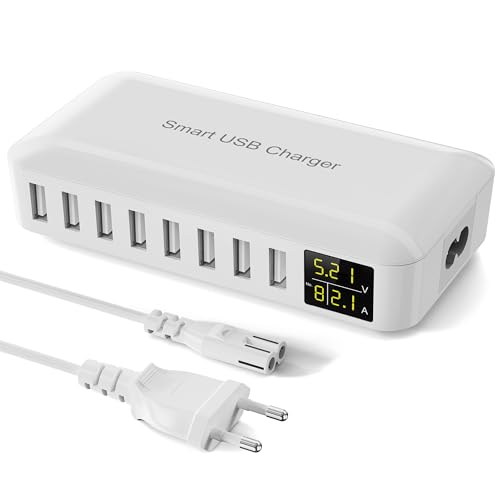 Rsydmny Chargeur USB, 8 ports, station de charge, plusieurs appareils avec écran LED, bloc d'alimentation pour iPhone 15/14/13/Pro/Max/Plus, iPad, Samsung Galaxy S23, S22 pixels, Huawei - Blanc