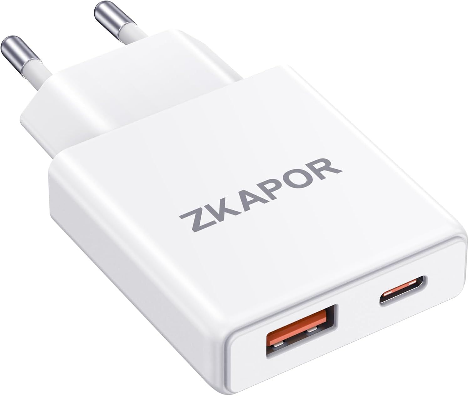 ZKAPOR Chargeur USB C, Prise 20W Secteur Rapide 2 Port Adaptateur USB A Type C Secteur pour iPhone 16/16 Pro/16 Pro Max/16 Plus /15/14/13/12/11/SE, Samsung Galaxy S24 S23, Huawei, Pad Pro/Air, Pixel