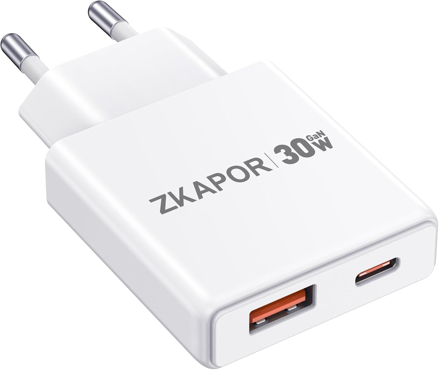 ZKAPOR Chargeur USB C, Prise 30W Secteur Rapide 2 Port Adaptateur USB A Type C Secteur pour iPhone 16/16 Pro/16 Pro Max/16 Plus /15/14/13/12/11/SE, Samsung Galaxy S24 S23, Huawei, Pad Pro/Air, Pixel