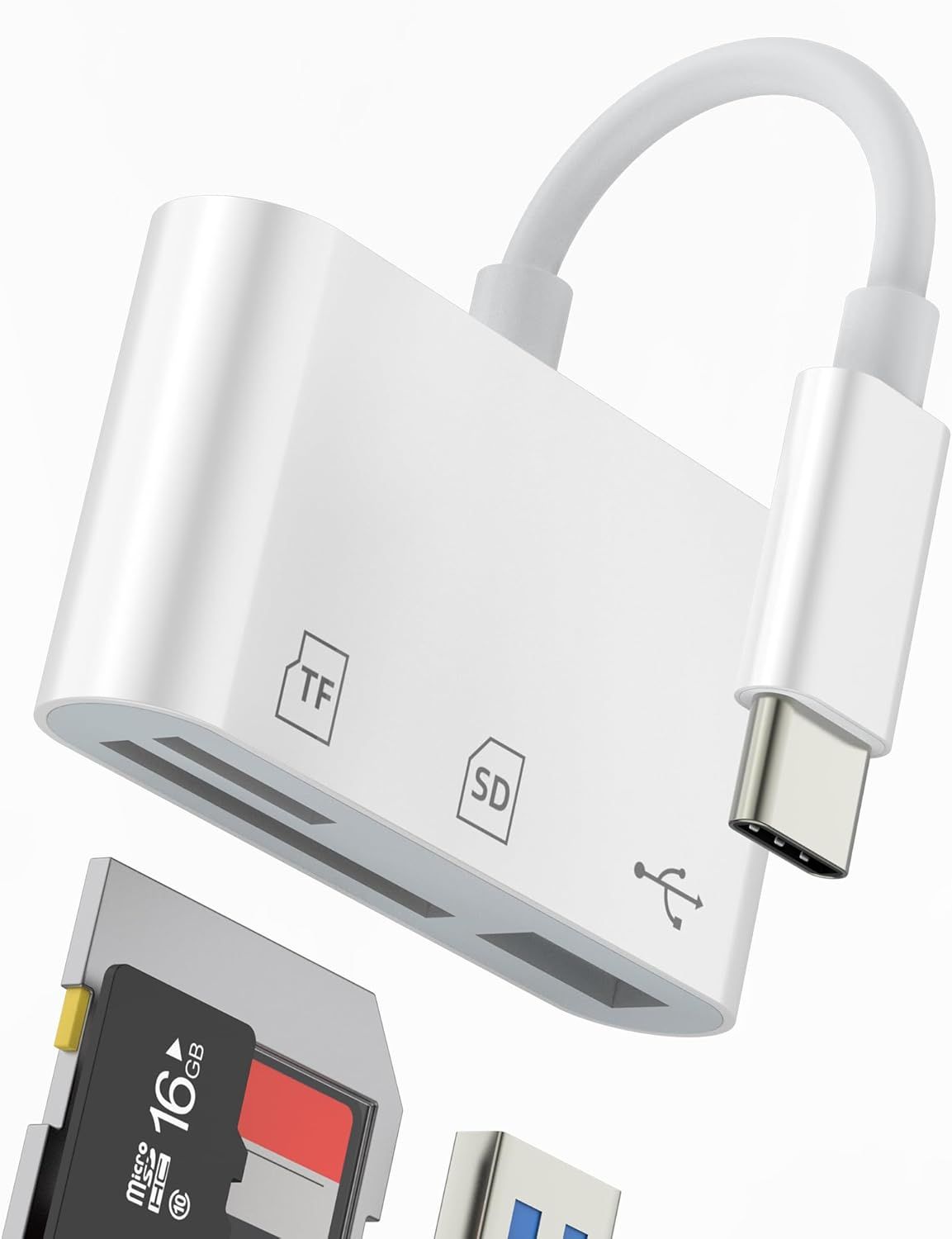 Lecteur de Carte SD USB-C Micro, Adaptateur 3 en 1 SD, TF et USB, Lecteur Mémoire Externe OTG Compatible avec iPhone 15/16 Pro Max Plus, Samsung Galaxy S25/S24/S23, iPad Pro, MacBook, Plug and Play