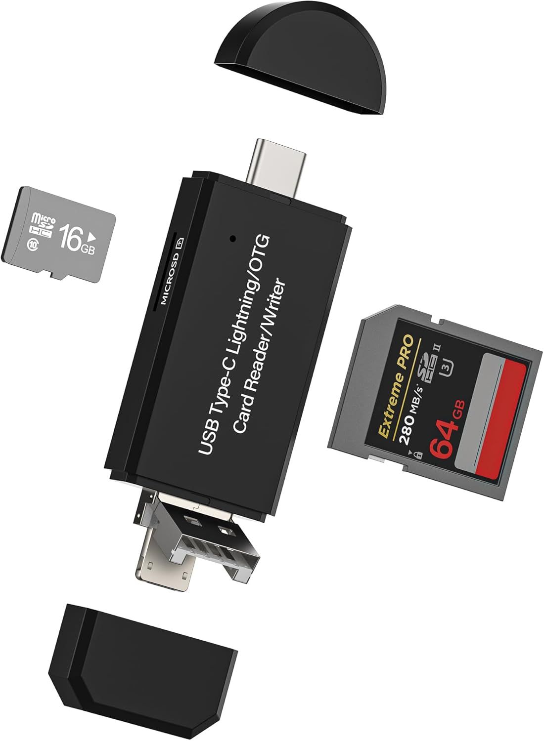 Lecteur Carte USB C Lightning USB-A Micro Usb Vers SD TF (4en1)pour iPhone 16 15 14 Pour Apple Adaptateur Micro SD Mémoire Card Reader PC Compatible Avec Samsung S24 Pour iPad Type C Flash Conducteur