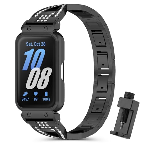 SMYAOSI Bracelet en Métal pour Samsung Galaxy Fit 3 SM-R390, Brillant Bracelet de réglable en acier inoxydable pour Samsung Galaxy Fit 3 SM-R390 Smartwatch Activity Tracker Femmes Hommes (Noir)