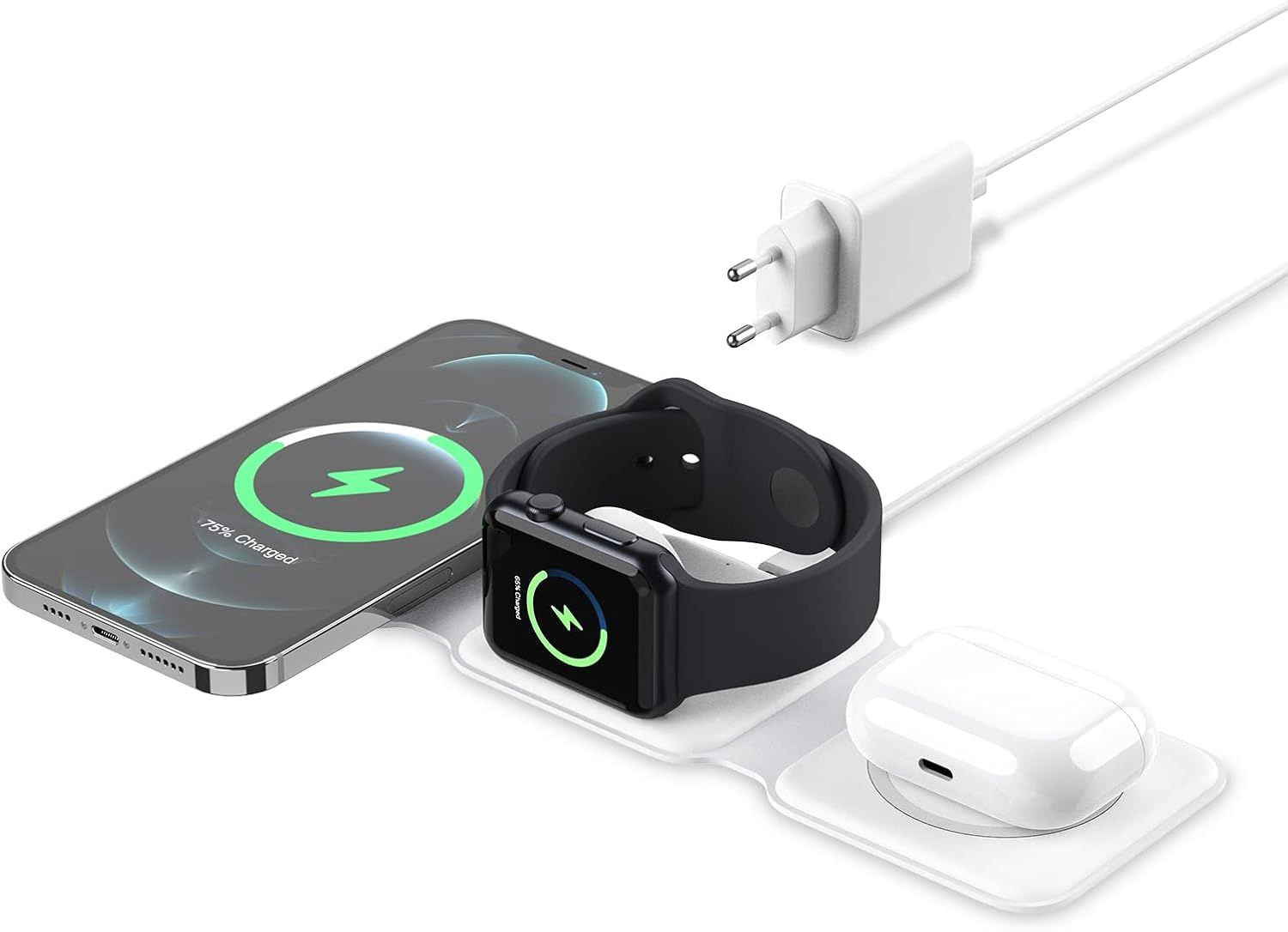 Induction Charger Wireless Charger 3 in 1 Universal Qi Foldable Fast Charging Station for iPhone and Samsung Magnetic 15W for iPhone 16/15/14/13/12/AirPods/iWatch/S22/S21/Z Flip/Z Fold