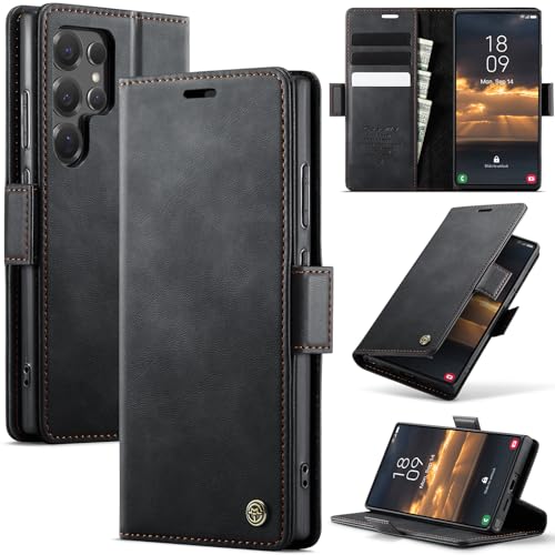 Lonjanfon Coque Samsung Galaxy S24 Ultla 5G, Housse Cuir PU Premium [RFID Blocage][Porte Cartes][Stand Fonction][Antichoc] Magnétique Flip Étui pour Samsung Galaxy S24 Ultla,Noir