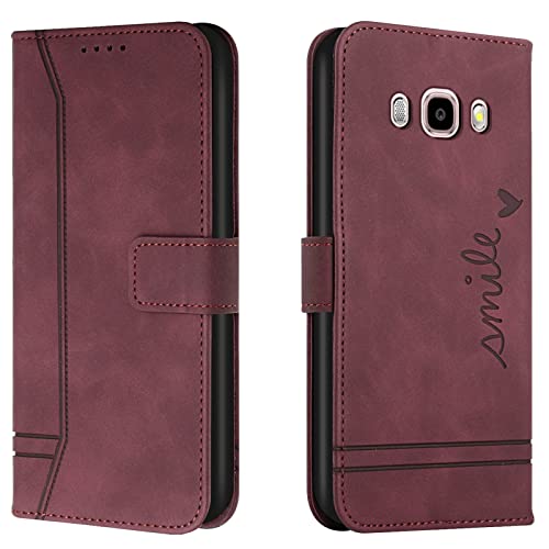 Lihondar Coque pour Samsung Galaxy J5 2016 /J510, Etui Portefeuille Samsung J5 2016 /J510, Protection Etui à Rabat Housse en Cuir PU avec Antichoc TPU [Magnétique] pour Samsung J5 2016 /J510 (Rouge)