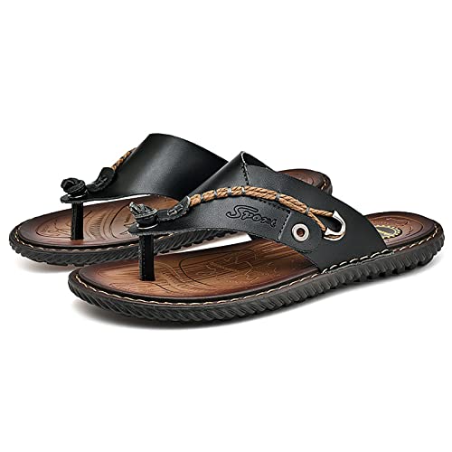 Youthful flying Tongs Plage Cuir Homme Sandale Marche Confort Claquettes Piscine Chaussures été(Size:46 EU,Color:Noir)