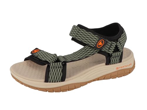 TOM TAILOR Homme 5380001 Sandale, Noir/Kaki, 41 EU