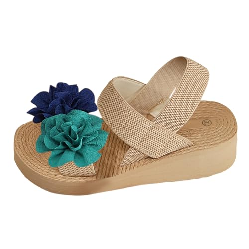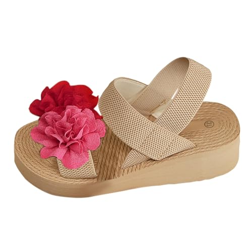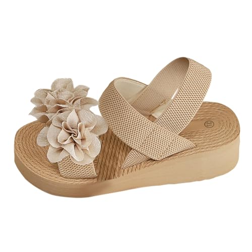 Uwdiohq Sandales Femme Bout Ouvert De Plage D'Été Pour Femmes Nouvelles À Fleurs Plates Confortables Élastiques Décontractées (Beige 43) Cuir Sandale Sport Chaussures Pieds Larges Talon