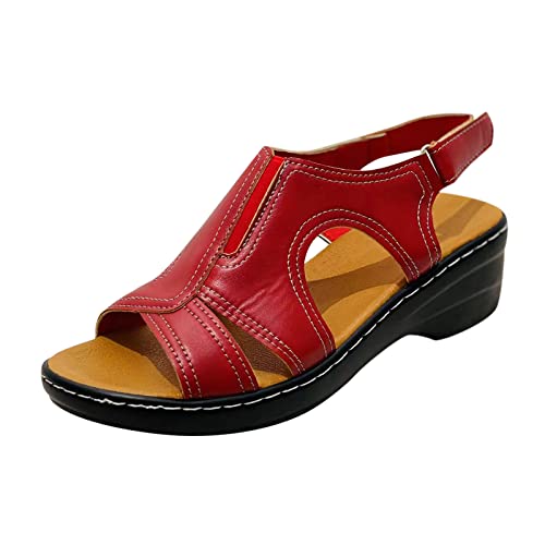 Uwdiohq Plateforme Femme Pour Femmes Chaussures Romaines Décontractées Sandales Compensées À Bouche De Poisson (Red 37) Été Confortable Sandale Randonnée Pieds Larges Dorees Nu Orthopédiques