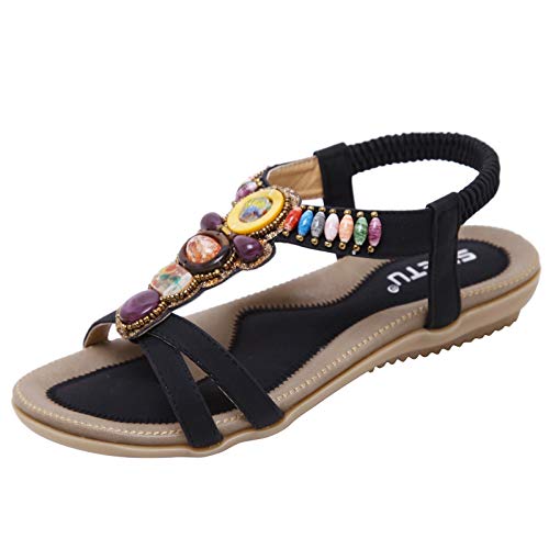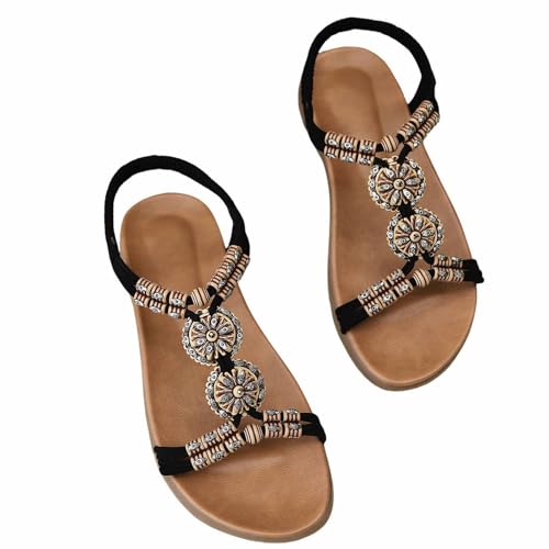LKRSEEF Sandale Plage Pieds Larges The Drop Femme Confortables Perles Amovibles Randonnée Spartiates Sandales Femme Bohême Décontractées Sandales Orthopediques Femmes X02 Noir,39