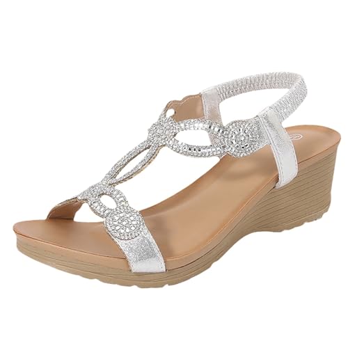 Uwdiohq Sandales Femme Été Confortable Chaussure Compensées À Bride Arrière Métalliques Pour Femmes Bohèmes D'Été Glamour (Silver 42) Confort Sandale Sport Chaussures Pieds Larges Petit Talon