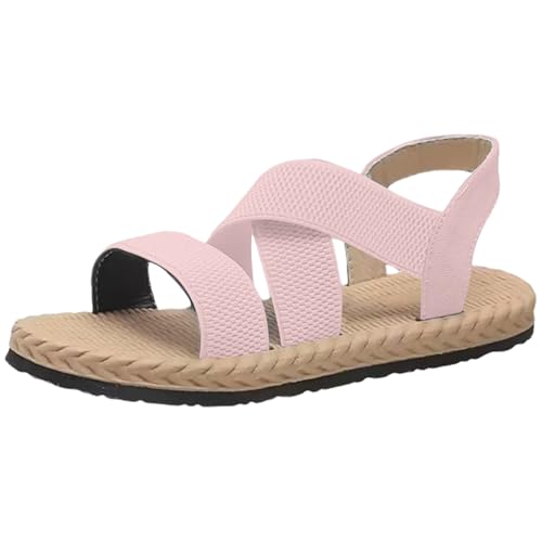 Uwdiohq Sandales Femme Bout Ouvert De Plage Plates À Pour Femmes Avec Bride Élastique La Cheville Confortables Enfiler Lanières (Pink 38) Confort Sandale Randonnée Chaussures Pieds Larges Petit