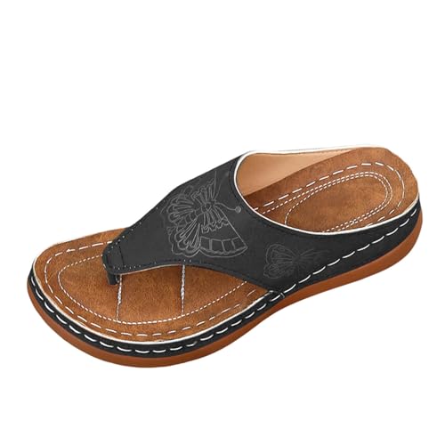 Générique Sandale Plate Sandales Confortables Pour Femme Avec Soutien De La Voûte Plantaire Sandales Orthopedique Femmes Été Compensé Claquettes Rétro Évidé Claquette À Soutien Plantaire Pantoufles