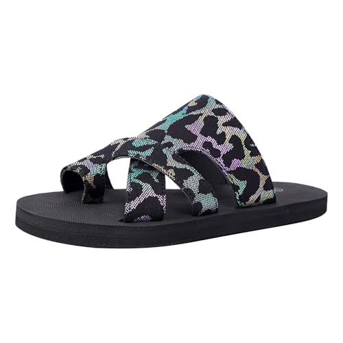 Générique Chausson Femme Ete Confort Sandale Plate Sandales Plates Pour Femme Avec Anneau D'orteil De Plage Tendance Strass Été Bohème Confortable Boucle Printemps Un Orteil Perlé Falt