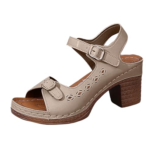 Générique Sandale Plate Femme Pour Un Usage Quotidien Décontracté Talon Épais Vintage Sandales Compensées Femme Orthopédique Été Bout Ouvert Confortables Pantoufles Sandales