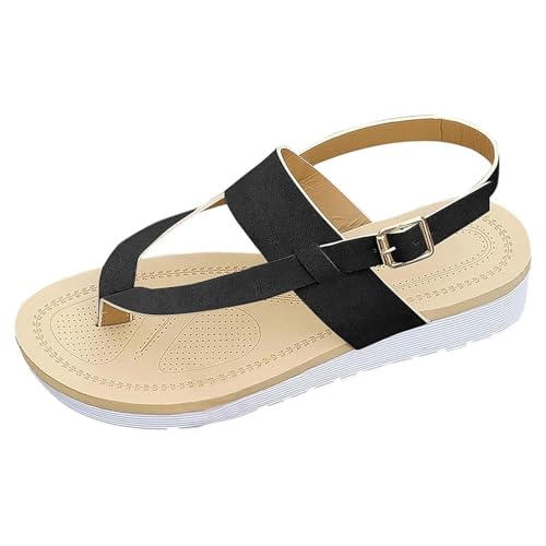 Chaussure Femme Orthopedique Chaussures d'été Femmes Tongs Sandales Pour Femmes Avec Soutien de La Voûte Plantaire Pour Une Marche Confortable Été Sandale Sandale Plateforme Femme (Black 42)