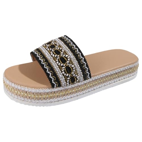 Sandales Orthopédiques Femme Chaussure Ete Chic Sandales d'été Pour Femmes Nouvelles Confortables à La Style Ethnique Rétro Légères à La Plage Sandale Plateforme Femme (Black 41)