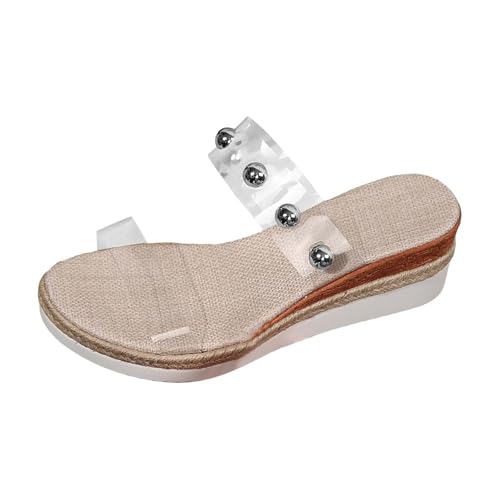 Chaussures Femme Compensées Nu-Pieds Larges Confort Sandales D'Été pour Femmes,Chaussures À Bout Ouvert,Respirantes,À Semelle Épaisse,À Talon Compensé,Chaussure Plage Femme Sandales (Beige,43)